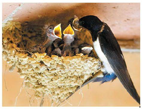 клюв у ласточки очень мал, ей приходится совершать до 500 путешествий