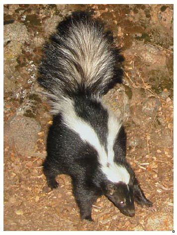 сделать это снова. Скунс имеет яркую белую полосу на фоне чёрной