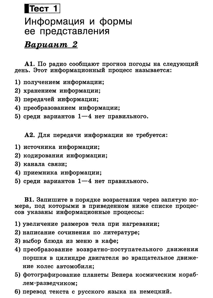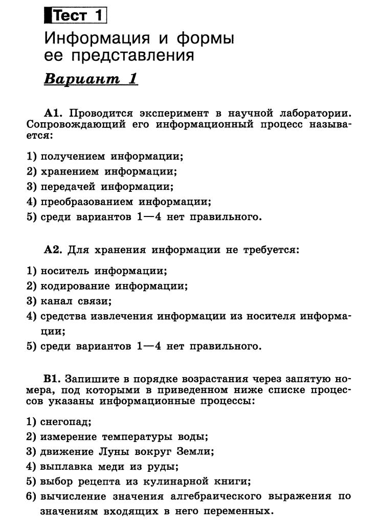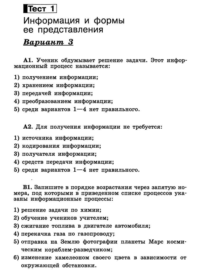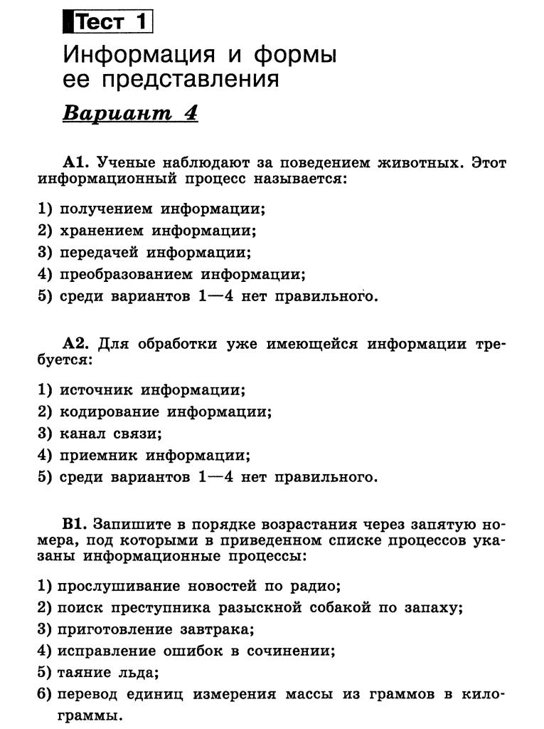 ТЕСТ 1. ИНФОРМАЦИЯ И ФОРМЫ ЕЕ ПРЕДСТАВЛЕНИЯ
